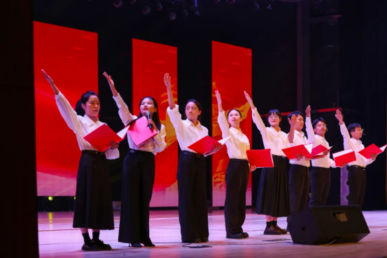 诗朗诵《匠心铸魂》没有使用宏大的口号,而是以平实而深情的语言,回溯教育者最初的信念与坚持。随后,《半条被子》用舞蹈语汇讲述一段军民鱼水情的温暖故事,演员们以极具张力的表演,将“半条被子”中的无私与信任诠释得淋漓尽致。苏晓燕老师一曲《英雄赞歌》则唱出了教育者平凡中的英雄气概——那不是战场上的硝烟,而是日复一日的坚守与奉献,“烽烟滚滚唱英雄”的歌声嘹亮激越,令人心潮澎湃。