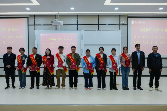 校党委副书记、纪委书记聂立新,校党委委员、财务总监曾隆槐为“优秀辅导员”颁奖