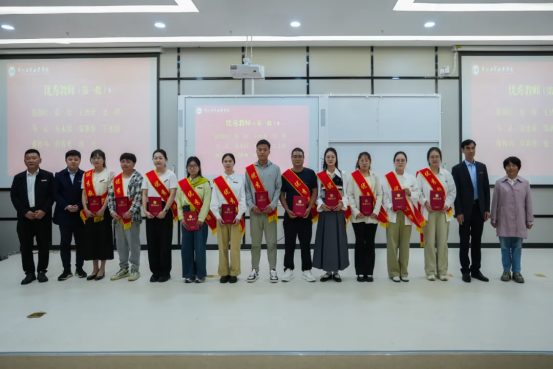理事长黄冠迪,党委副书记、校长勒系琳,校党委委员、副校长宋新乐,校长助理彭双艳为“优秀教师”颁奖