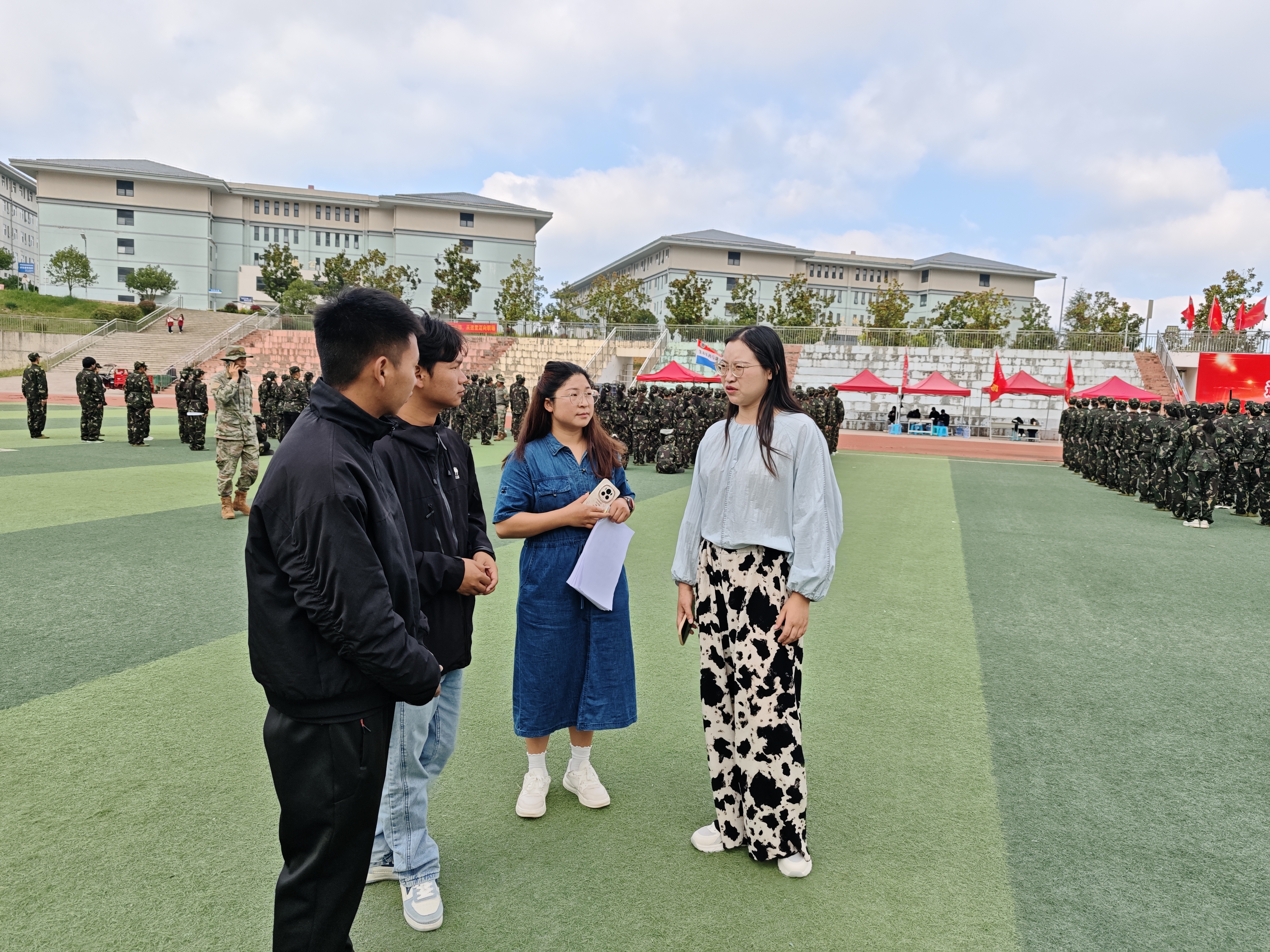 秋阳淬炼,迷彩飞扬。近日,生态医药与康养学院2025级新生军训正在紧张有序地进行。为保障军训工作顺利开展,弘扬志愿服务精神,生态医药与康养学院组织11名学生骨干组成志愿服务队,为参训新生提供全方位、人性化的后勤保障与关怀服务,成为训练场边一道亮丽的风景线。