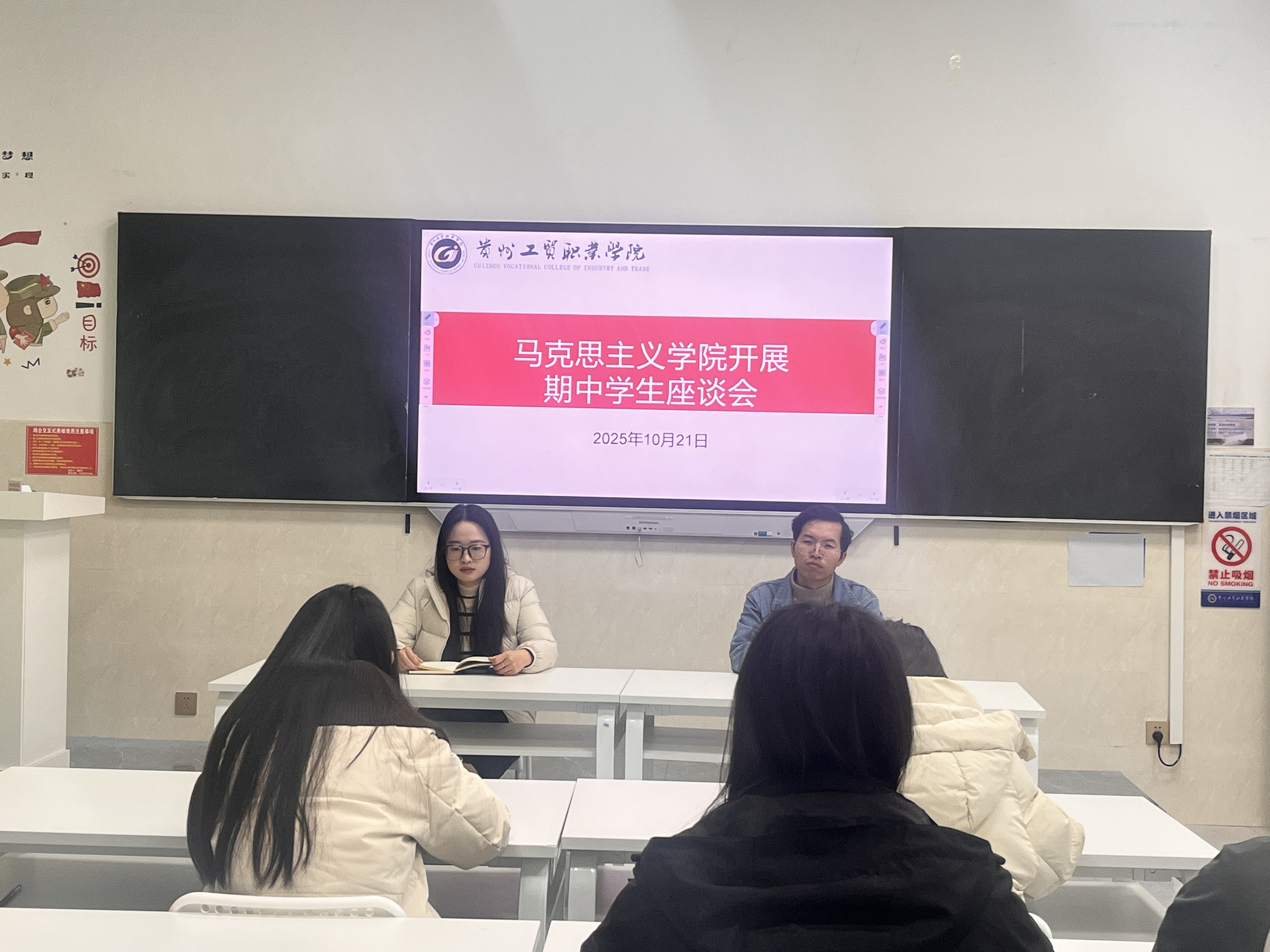 为强化教学过程管理,进一步规范教育教学,马克思主义学院于 10 月 13日至 10月22 日开展期中教学检查工作,同步组织教师座谈会与学生座谈会,构建 “检查 - 反馈 - 整改” 全链条质量提升机制,以进一步推动思政课教学改革向纵深发展。我院成立由院长邓天丽牵头、各教研室主任为组员的教学检查小组,对照《贵州工贸职业学院检查要点》对学院教师的期中教学材料开展规范性检查,主要检查教师课程标准、教案、课件、教学进度表及教师工作手册等材料,并重点关注学习通平台在教学过程中的实际运用情况,确保教学运行规范有序。