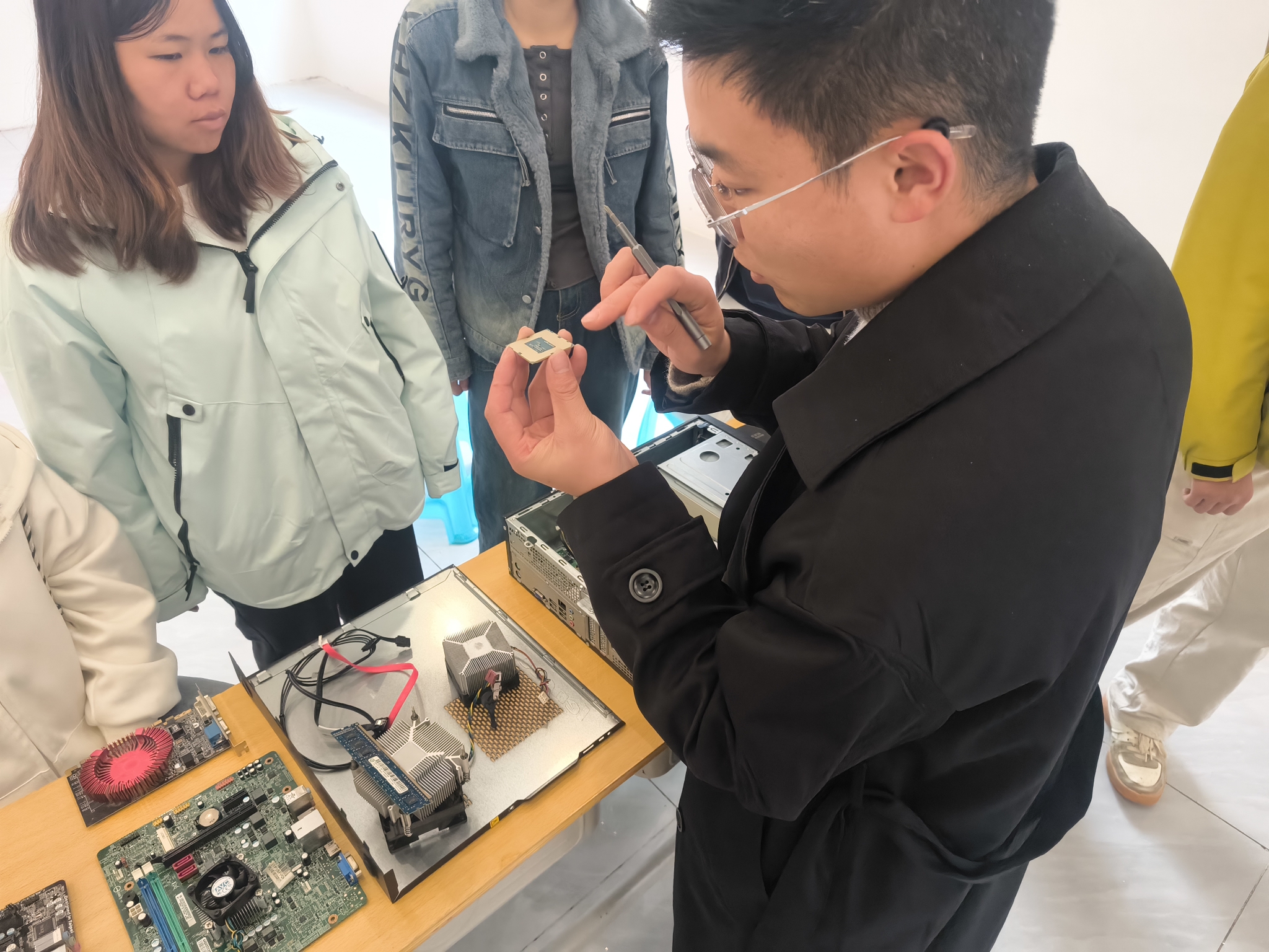 服务期间,志愿者针对同学们电脑问题提供精准支持:处理软件故障时,不仅完成系统重装与病毒清理,还指导同学们进行磁盘清理,讲解操作要点;遇到硬件问题,则开展键盘修复、散热清灰等基础维修。知识普及环节,闵鑫老师结合实例讲解电脑硬件、数据安全与日常维护知识,同学们踊跃互动,现场氛围积极。