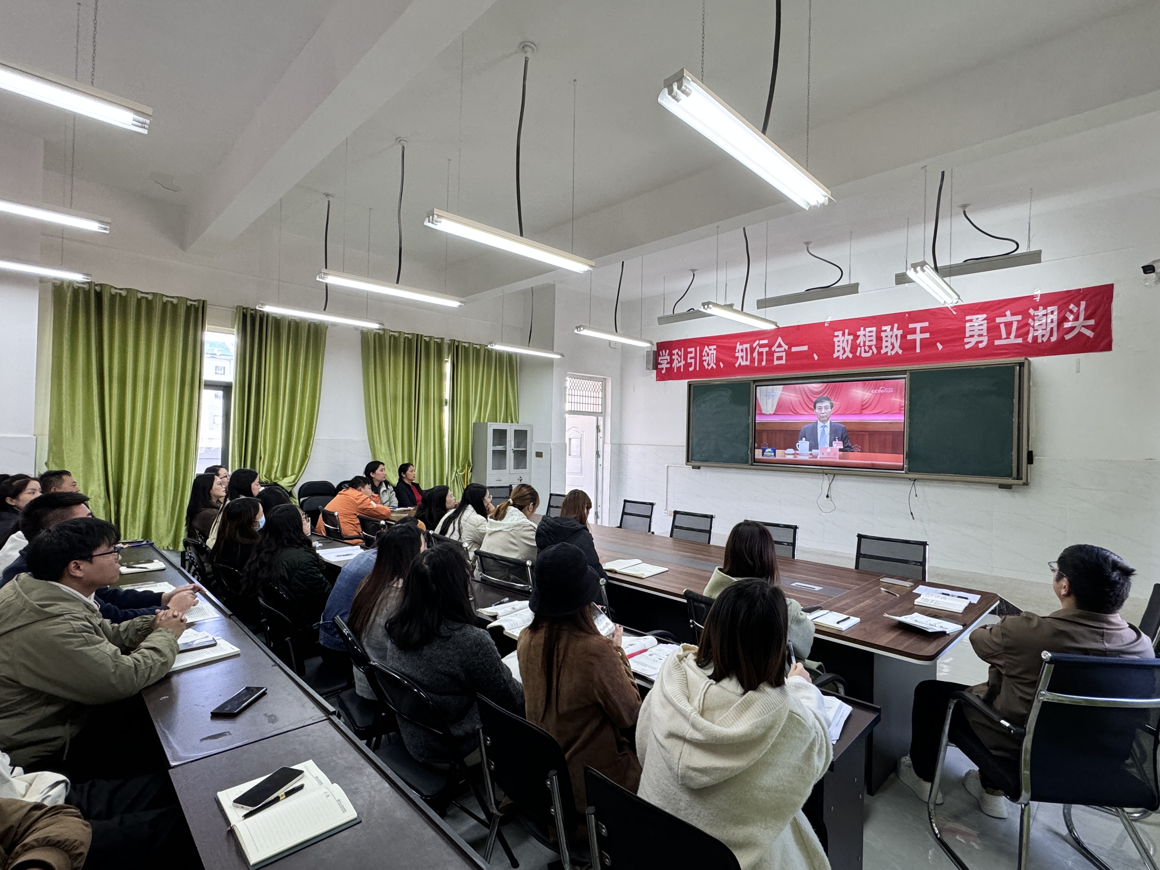 11月4日,现代商务学院(乡村振兴产业学院)在307党员活动室开展专题学习活动,学院全体教师齐聚一堂,在党支部书记、院长黄教珍的带领下,通过视频学习形式深入领会重要文件精神,为教育教学高质量发展凝聚思想共识。