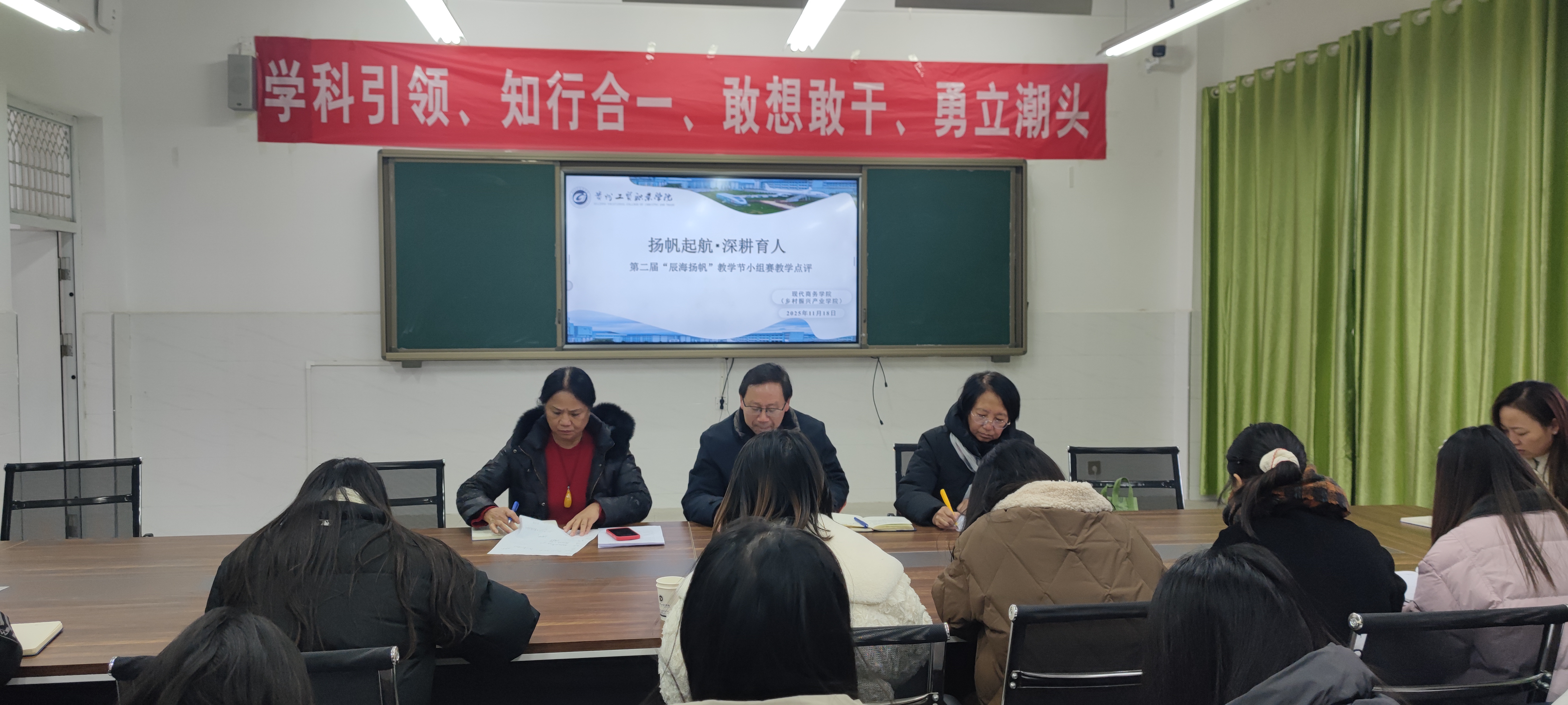 为深化教育教学改革,提升教学基本功,搭建教师交流展示平台,提升课堂教学质量。落实贵州工贸职业学院第二届“辰海扬帆”教学节活动方案。11月18日下午,现代商务学院第二届“辰海扬帆”教学节活动启动仪式正式开启,全院各专任教师积极参与,以饱满的热情、扎实的专业功底呈现了一场场精彩的教学比拼,为教学节活动拉开了精彩序幕。本次青年教师组教学比赛小组赛面向全院所有专任教师,共分为财经组、商贸组、轨道交通组三个小组展开角逐,每组将评选出前三名,最终推荐各组第一名晋级后续赛事。为确保本次评审的公平、公正及专业,评委阵容由现代商务学院党支部书记、院长黄教珍,学校图书馆馆长吴志强,智能智造工程学院张艳教授,以及学院各教研室主任、骨干教师代表共同组成。