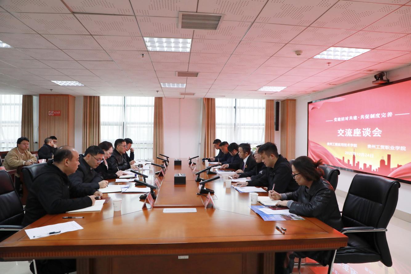 为深化两校党建工作合作,实现资源共享与协同发展,10月24日上午,贵州工贸职业学院党委副书记、纪委书记聂立新带队赴贵州工程应用技术学院开展党建工作结对共建交流座谈会。贵州工程应用技术学院党委书记熊星,贵州工程应用技术学院党委副书记王春华,贵州工贸职业学院相关代表及两校相关同志参会。本次座谈会由贵州工程应用技术学院党委组织部部长王桂红主持.