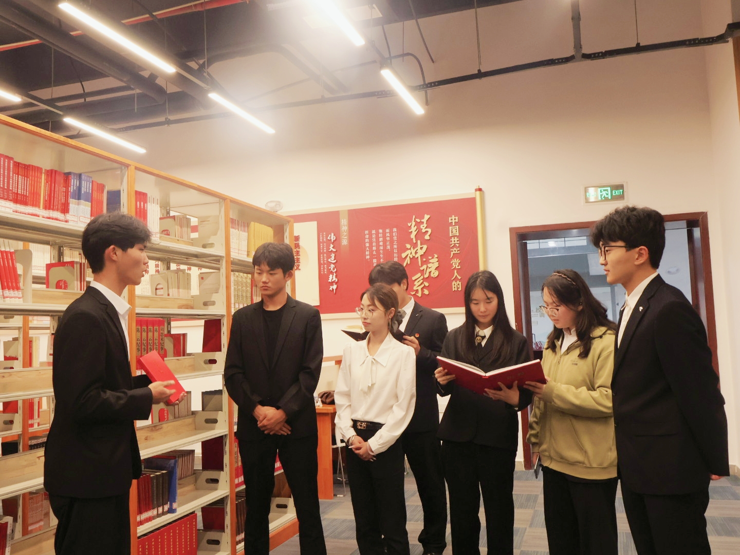 活动尾声,学生代表在图书馆红色阅览区向同学们推荐了《红岩》、《青春之歌》等红色经典,介绍了书籍的历史价值与阅读意义,鼓励同学们通过阅读深化对红色精神的理解。