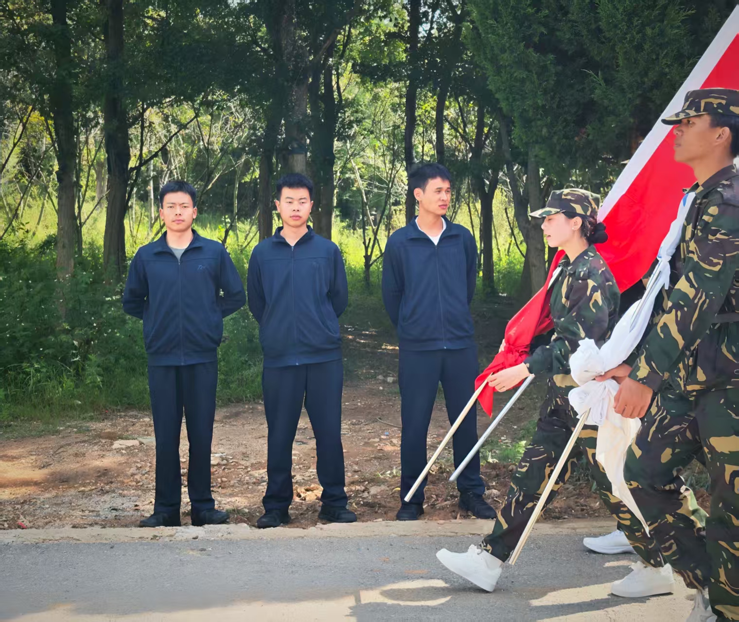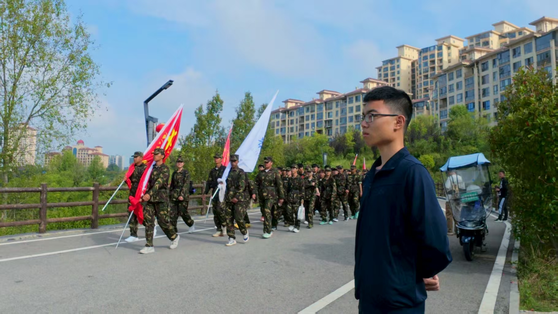 9月10日,我校组织2025级大一新生开展军训拉练活动。为保障全体参训新生的安全与拉练任务的有序推进,军事爱好者协会组建专项保障队,在拉练路线的关键安全点全程值守,以专业行动为新生拉练保驾护航。