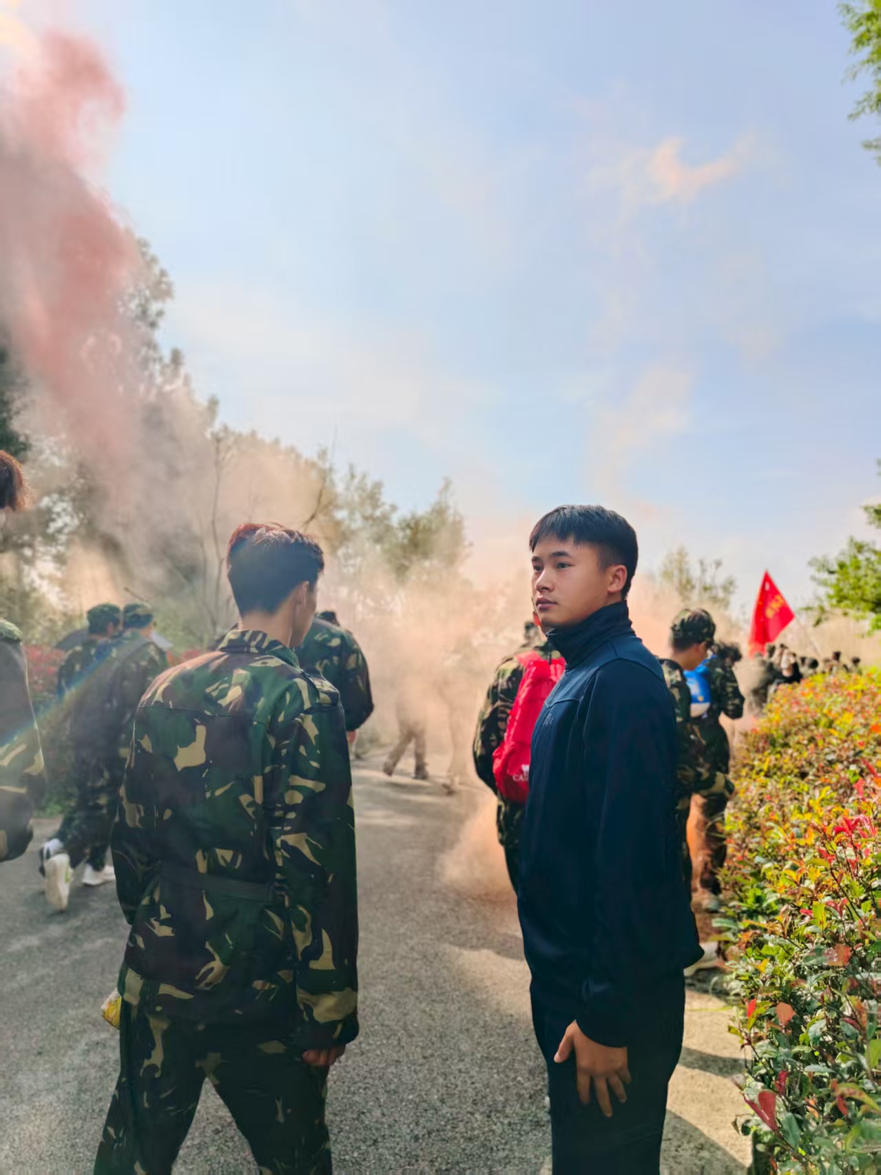 本次军训拉练全程10公里,路线涵盖环海路、凤山大道、滨海大道、幸福小镇、草海北坡生态公园等路段,存在岔路口多、陡坡弯道多等安全隐患。早在拉练的前一天,军事爱好者协会教官与军训负责人便联合勘察路线,结合地形特点划定核心安全点,包括10多个路口引导点、2个陡坡防护点,并根据各点位职能需求,选拔40多名具备基础军事知识、组织协调能力的协会成员组成值守队伍。