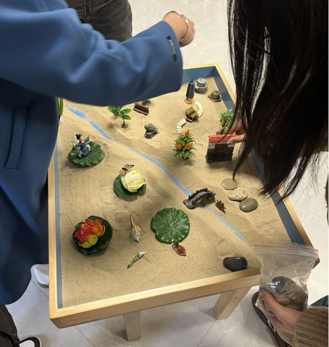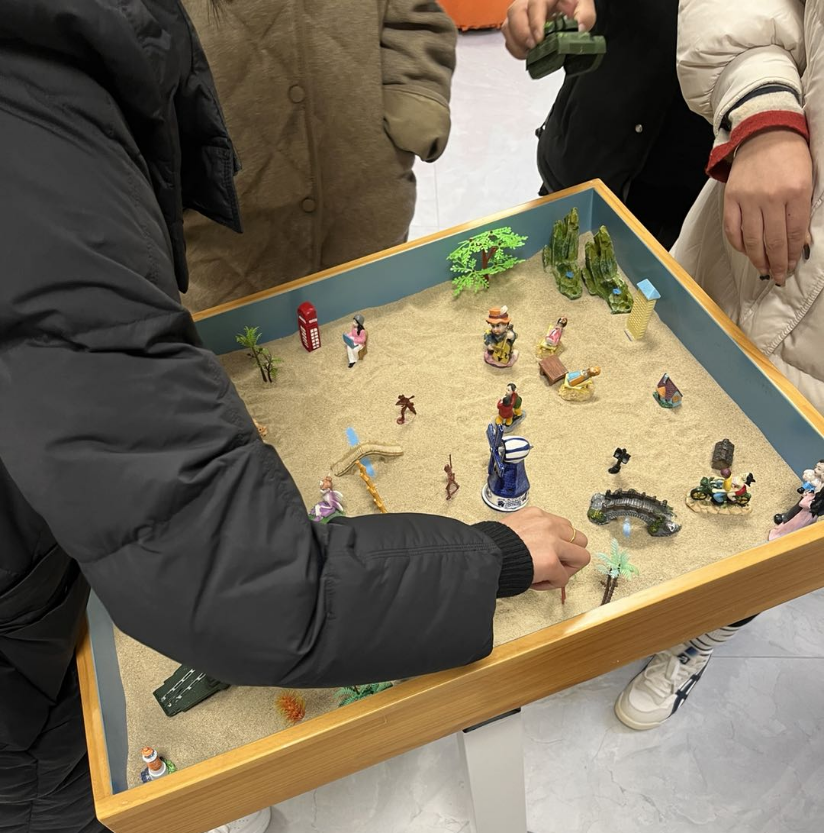 活动尾声,各小组凭借所得“资源”,在沙盘上共同创作“团队的守护与愿景”主题作品。成员们充分发挥创意,通过沙具摆放勾勒团队应对压力、相互支持的美好图景,并为作品命名、分享背后的故事。一张张充满寓意的沙盘作品,将活动中的体验升华为具象的团队精神与未来期许。此次团体辅导活动以丰富多样的互动形式,为辅导员提供了压力宣泄的有效渠道,搭建了团队交流的良好平台。大家在活动中释放了压力,增进了默契,凝聚了合力。未来,大学生心理健康指导中心将持续关注教职工身心健康,开展更多贴合需求的关爱活动,为教育事业高质量发展注入温暖力量。