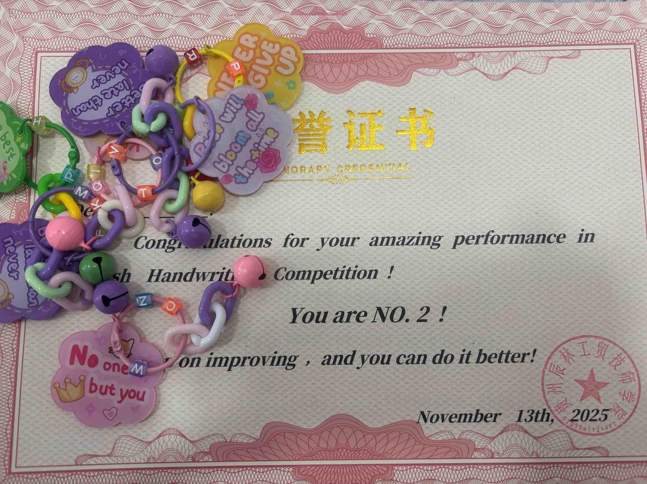为营造良好的英语学习氛围,提升学生英语书写能力与审美素养,技师学院11月13-16日成功举办“笔下生花·字载韶华”英语书法大赛。赛事圆满落幕,共评选出邓瑞、蔡仕富等一等奖8名,赵长月、施辉洁等二等奖10名、金妍、杨豪等三等奖15名。