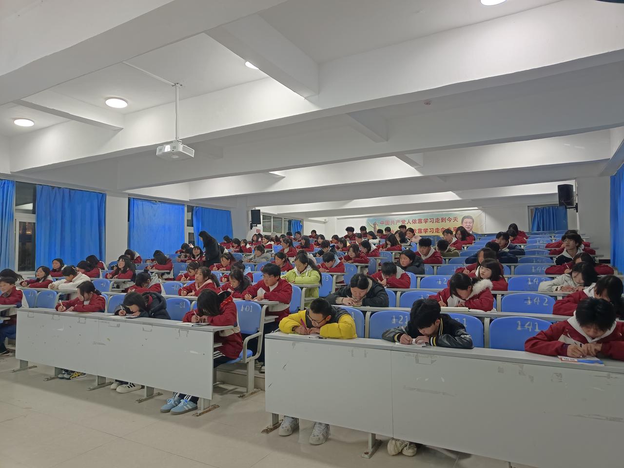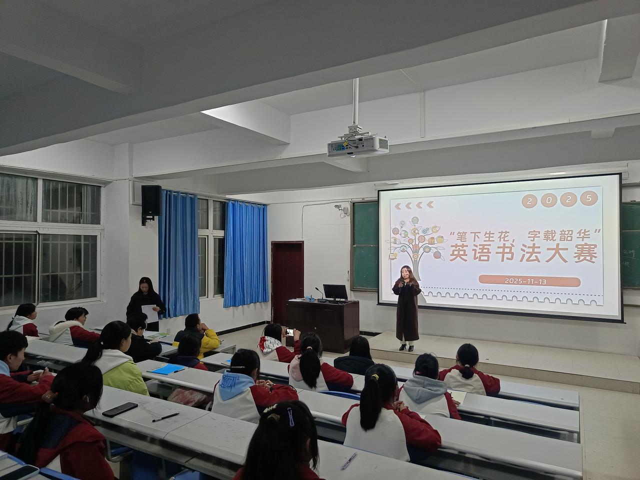 决赛现场秩序井然,同学们全神贯注,将热情与专注凝聚于笔端。书写过程中,大家或注重规范,或讲究布局,或追求整洁,充分展现了英语书法的艺术魅力与青春风采。比赛于当晚20:10顺利结束,同学们有序提交作品并离场。