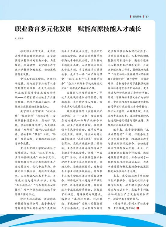 《当代贵州》刊文 | 职业教育多元化发展 赋能高原技能人才成长